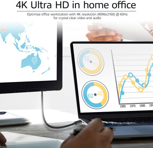 • Deze USB-C naar DisplayPort Adapterkabel verbindt uw laptop met USB-C-output met een monitor of beamer met DisplayPort-input.