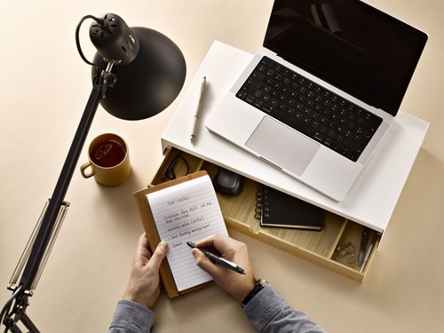 • De FriXion Zone heeft een discreet en minimalistisch ontwerp, met een metalen V-vormige ring ter ondersteuning van het maken van al je notities of lijstjes op het werk.