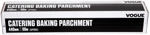 • Hoge kwaliteit, 44cm breed bakpapier van Vogue op handige rol van 50 meter. Het papier is aan beide zijden voorzien van een siliconen coating, waardoor het eten er niet aan vast blijft plakken.