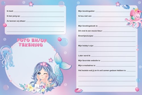 • Laat je vriendjes en vriendinnetjes in dit kleurrijke Zeemeermin vriendenboek schrijven. Ontdek leuke verhalen en grappige weetjes over ze. Wanneer zijn ze jarig en wat willen ze later worden? Wat is hun lievelingsdier en waar houden ze totaal niet van? Al je vriendjes en vriendinnetjes kunnen een mooie foto van zichzelf in dit vriendenboek plakken of een mooie tekening maken. Bewaar je herinneringen voor altijd! Wie laat jij in jouw vriendenboek schrijven?