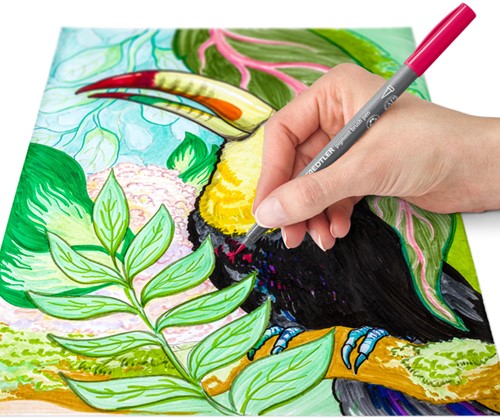 • Hoogwaardige viltstiften met penseelpunt en de innovatieve Multi Ink inkt - gebaseerd op premium pigmenten die een extreme lichtechtheid en uitzonderlijk briljante kleuren bieden.