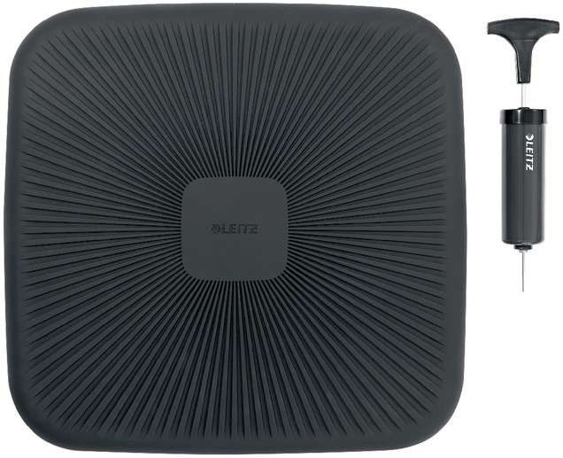 Het Leitz Ergo Actieve Wiebelkussen is het perfecte zitkussen voor een comfortabele en actieve werkplek. Dit opblaasbare zitkussen is ontworpen voor gebruik op elke stoel en helpt de rug te versterken door microbewegingen te maken om het evenwicht te bewaren terwijl je zit. Het IGR-gecertificeerde luchtgevulde stoelkussen verbetert de bloedsomloop en verlicht de druk op de ruggengraat om ongemak door langdurig zitten of gezondheidsproblemen zoals ischias te verminderen. Vierkante vorm voor een betere ergonomie dankzij een groter zitoppervlak in vergelijking met standaard ronde wiebelkussens en een correcte positionering op de stoel. Met zijn minimalistische ontwerp kan dit stijlvolle orthopedische zitkussen een positieve invloed hebben op het welzijn door moeiteloos de perfecte actieve werkomgeving te creëren. *Producteigenschappen; *Vierkante vorm voor een betere ergonomie dankzij een groter zitoppervlak in vergelijking met standaard ronde wiebelkussens en een correcte positionering op de stoel. *Kan ongemak, vermoeidheid en stijfheid als gevolg van langdurig zitten.*Verbetert de bloedcirculatie en kan de druk op de wervelkolom verlichten door microbewegingen te maken om het evenwicht te bewaren en het contact tussen je stuitje en de stoel te minimaliseren. *Kan tot 150 kg dragen als hij op een stoel wordt geplaatst *Wordt geleverd met luchtpomp