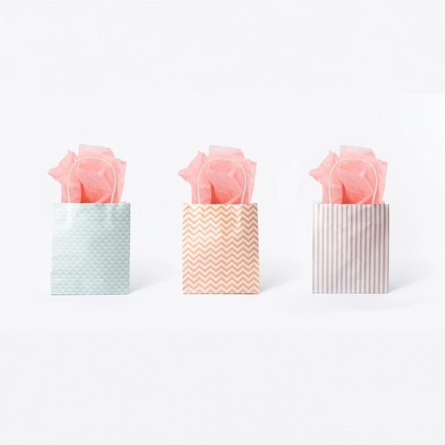 Tas met handvat Folia kraftpapier 115gr 18x21x8cm wit set à 3 dessins