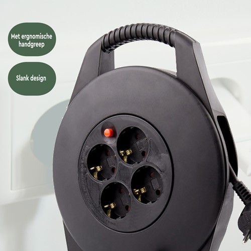 Kabelhaspel BRASQ  4 voudig 10 meter zwart