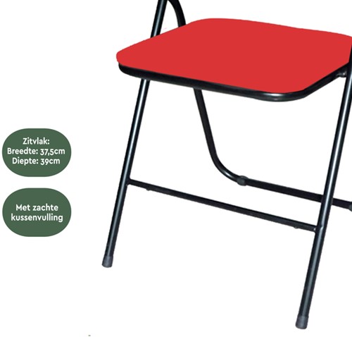 • Iets te vieren, te presenteren of een extra zitplaats creëren? Zet makkelijk en snel de stevige BRASQ Klapstoel bij. Met een strak design past hij in elk interieur en hij is supersnel opengeklapt voor gebruik. Heb je een evenement, wil je je patiënten comfortabel in de wachtkamer plaats laten nemen of geef je een training? Schuif aan, zet bij! De BRASQ Klapstoel zet je ook weer gemakkelijk weg in de keukenkast, garage of je opberghok. Met zijn lichtgewicht frame weeg de klapstoel in zijn geheel slechts 3,2kg waardoor je deze makkelijk op kunt pakken en weg kunt bergen. Deze stoelen hebben een slim design en passen perfect in elkaar waardoor je ze makkelijk op een rij kunt zetten en ze minimale bergruimte innemen. Met een zithoogte van 44 cm en een zacht zitcomfort biedt deze klapstoel optimaal zitgemak. De stoelpoten zijn gemaakt van stevig metaal met een zwarte poedercoating en zijn afgewerkt met kunststof doppen die krassen op de vloer voorkomen.