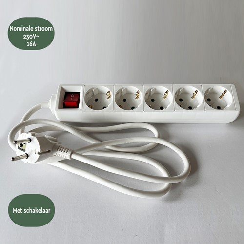 • Nooit meer een stopcontact te kort! Deze BRASQ Stekkerdoos, in witte kunststof uitvoering, met 5 stopcontacten is een echte handige must-have en een onmisbaar hulpmiddel in het moderne huishouden en op kantoren. Sluit al je elektrische apparaten aan, zoals tv's, huishoudelijke apparaten, gadgets en (spel)computers aan op deze 3-voudige stekkerdoos met schakelaar. De stekkerdoos met 3 sockets, die geschikt is voor binnenshuis gebruik, is voorzien van geaarde stopcontacten en een hoofdstekker met randaarde. De stekkerdoos is direct klaar om te gebruiken en geschikt voor geaarde en niet-geaarde apparaten. Met zijn handige aan-uit schakelaar kun je gemakkelijk de toevoer van elektriciteit regelen, waardoor je zelf ook het energieverbruik in huis of kantoor bepaald. De schakelaar is uitgerust met verlichting, zodat je ook in het donker duidelijk kunt zien of de schakelaar is ingeschakeld of niet. Door de handige schuine plaatsing van de stopcontacten kunnen er makkelijker haakse stekkers op worden aangesloten.
