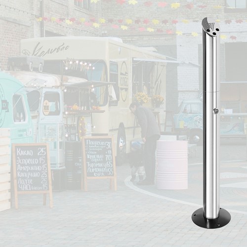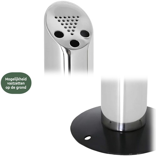 • Hygiëne en reiniging: De zuil is zeer eenvoudig en hygiënisch te legen. De staande asbak van BRASQ vangt de peuken op in het onderste gedeelte van de kolom. Door deze constructie, is er een beperkte zuurstof toevoer en doven de peuken snel. Dit komt de veiligheid van gebruiker en omgeving ten goede. Door het klepje onderaan met de sleutel te openen kun je de inhoud gemakkelijk legen. Sluit de asbak vervolgens weer met de sleutel.