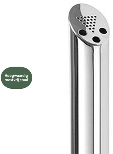 • De fraaie staande asbak van BRASQ draagt bij aan een schone en opgeruimde omgeving als het gaat om sigaretten of sigaren peuken. Deze rookpaal, of peukenzuil, heeft een luxueuze en moderne uitstraling en is gemaakt van geborsteld hoogwaardig RVS (Stainless Steel 304). Door de hoge mate van corrosiebestendigheid van dit materiaal kan hij weer en wind doorstaan.