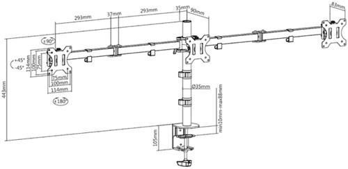 • De bureausteun is geschikt voor drie schermen tot en met 27 inch met elk een maximum gewicht tot en met 7kg. De AC8303 is uitgerust met VESA 75x75 en 100x100.