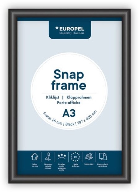 • Geef je posters een stijlvol podium met de veelzijdige Europel Premium aluminium kliklijst. Deze hoogwaardige kliklijst, ook bekend als posterlijst of wissellijst, biedt een snelle, eenvoudige en representatieve presentatie van je A3 posters. Belangrijkste kenmerken:
