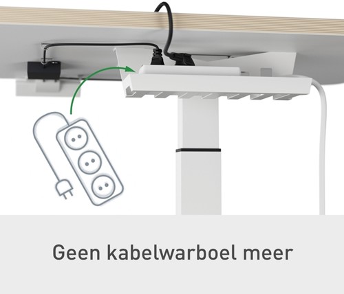 • Inclusief een kabelgoot die onder het bureau kan worden bevestigd voor een stopcontact en 4 zelfklevende doorzichtige clips om kabelwarboel te verminderen.