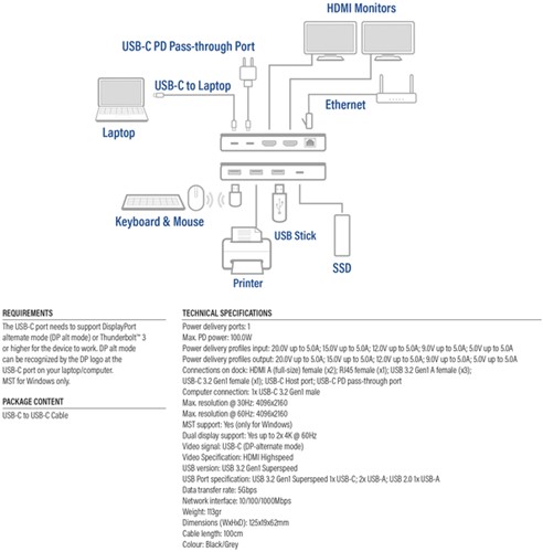 Dockingstation ACT USB-C 4K MST voor 2 HDMI monitoren