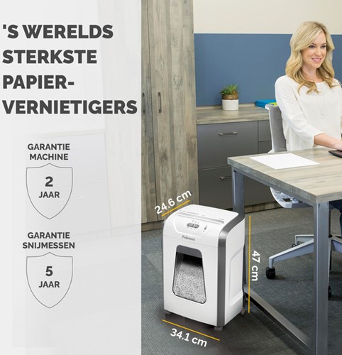• 19 liter uitneembare opvangbak – ongeveer 250vel vernietigd papier.
