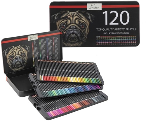 Deze indrukwekkende set bevat maar liefst 120 kleuren, perfect voor kunstenaars van alle niveaus. Elke potlood biedt een rijke, romige pigmentatie die zorgt voor een soepele en consistente applicatie. Ideaal voor tekenen, kleuren en het creëren van gedetailleerde kunstwerken. De verpakking is FSC gecertificeerd.