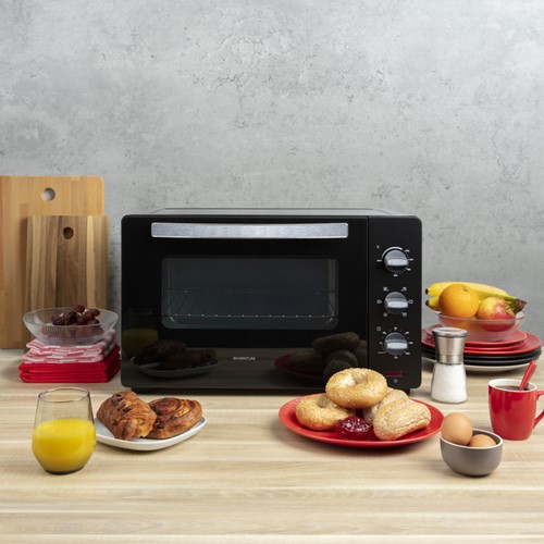 • De Inventum vrijstaande heteluchtoven OV457B heeft een netto inhoud van 45 liter. Dit model heeft 6 ovenprogramma's. Door de hetelucht is de temperatuur gelijkmatig verdeeld. Opwarmen gaat extra snel door de 4 verwarmingselelementen. Daarnaast is de oven voorzien van een timer. Het apparaat wordt standaard geleverd met een bakplaat, ovenrooster, kruimelplaat en een draaispit.