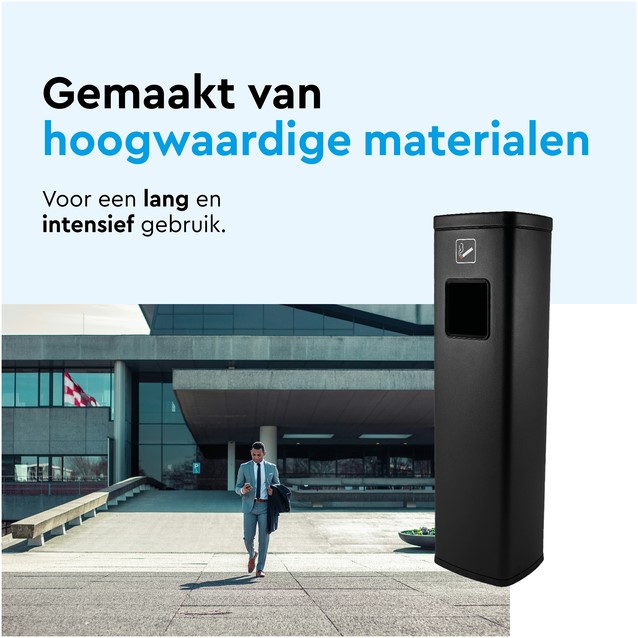 Afvalbak met asbak BRASQ 20 liter AT400 zwart