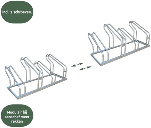 • Op zoek naar een stabiele parkeerplek voor je fiets? BRASQ biedt dé oplossing voor het netjes wegzetten van je tweewieler! Maak kennis met ons enkelzijdige beugelfietsenrek, ontworpen om jouw fietservaring naar een hoger niveau te tillen. Ons fietsenrek is compact en biedt voor meerdere fietsen een solide plaats. Opgeruimd staat netjes: Altijd plaats voor je fiets! Houd je kantoor- of bedrijventerrein georganiseerd of zorg ervoor dat de voor- en achtertuin weer begaanbaar wordt. Het BRASQ Fietsenrek is gemaakt van gegalvaniseerd staal. Het materiaal is gegalvaniseerd wat zorgt voor een sterk en duurzaam materiaal dat tegen een stootje kan en de levensduur ten goede komt. Solide en slim parkeren: Het rek weegt 9kg en de buizen van de beugels hebben een dikte van Ø16x1.5mm. Het rek is geschikt voor (stads)fietsen met een maximale bandbreedte van 5.7cm. Met een afstand van 31cm, en het slimme hoog-laag principe tussen elke parkeerplek, is er voldoende ruimte en raken fietsen niet met elkaar verstrikt. In tegenstelling tot hoe gebruikelijk fietsenrekken zijn vormgegeven heeft het BRASQ Fietsenrek beugels die verspringen in hoogte. Hierdoor is er ruimte om eenvoudig je fietsen naast elkaar te plaatsen zonder dat de sturen en remkabels in elkaar verstrikt raken. Eenvoudige installatie: Plaats het fietsenrek zowel binnen als buiten. Dankzij de voorgeboorde gaten, de meegeleverde schroeven en de montagesleutel staat het rek snel in elkaar. Voor extra veiligheid en stevigheid kan het rek op de grond worden gemonteerd. De fietsenrekken zijn door boorgaten aan de zijkant ook aan elkaar te maken, hierdoor creëer je het perfecte fietsenrek voor elke situatie.