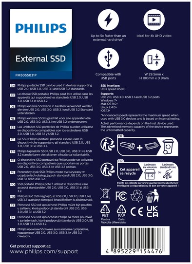 SSD Philips External 500 GB Ultra Speed Space Grey