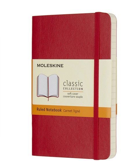 Een flexibele versie van het legendarische notebook, nu in opvallend rood. Notebooks met zachte kaft, verkrijgbaar in verschillende afmetingen en met verschillende pagina-indelingen, zijn robuuste en toch op natuurlijke wijze aanpasbare hulpmiddelen voor het maken van notities; ze hebben de iconische Moleskine-kenmerken, zoals afgeronde hoeken, leeslint, zuurvrij, ivoorkleurig papier, elastische sluiting en uitbreidbaar binnenvak en de geschiedenis van Moleskine. Colored Soft Cover Classic Notebook - Afgeronde hoeken - Elastische sluiting - Ivoorkleurig Moleskine papier - Bijpassend leeslint - Papier: 70 gsm, zuurvrij, ivoorkleurig, gelinieerd - “In geval van verlies” label op het schutblad - Uitbreidbaar binnenvak achterin - Herbruikbare papierband heeft B kant met extra afgedrukte hulpmiddelen - Platliggend, opent 180° - De geschiedenis van Moleskine staat binnenin beschreven - Moleskine S.p.A. maakt en verkoopt FSC® gecertificeerde producten