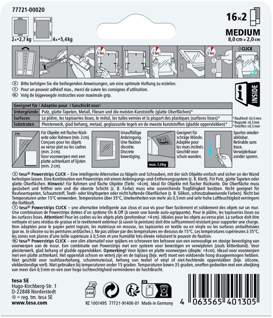 Kleefstip tesa Powerstrips Click Medium 16 paar wit