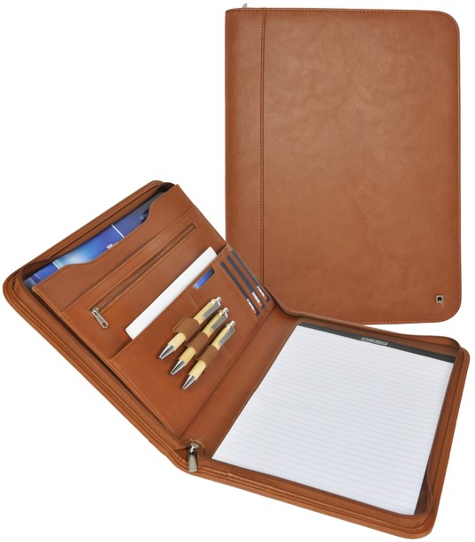 Schrijfmap DESQ A4 kunstleder met rits bruin