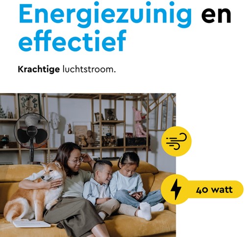 • Stabiel en veilig ontwerp. De stevige kruispootvoet met rubberen beschermdopjes zorgt voor optimale stabiliteit van deze waaier, zelfs op gladde vloeren. Daarnaast biedt het mesh beschermrooster van deze ventilator op voet extra veiligheid door de ventilatorbladen af te schermen. Zo geniet je zorgeloos van verkoeling, ook in huishoudens met kinderen of huisdieren.