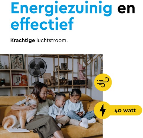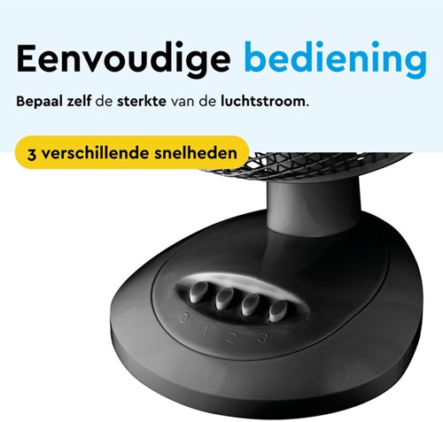 • Flexibel en veelzijdig in gebruik. Met de oscillatiefunctie zorgt deze ventilator voor een gelijkmatige luchtverdeling in de kamer. Daarnaast kun je de luchtstroom eenvoudig richten door de ventilatorkop aan te passen. Naast verkoeling is deze ventilator ook ideaal voor praktische toepassingen zoals het sneller laten drogen van verf of het drogen van een natte vloer.
