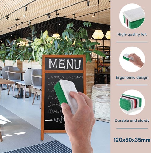 • Snel en eenvoudig gebruik: Verwijder krijtstrepen in één veegbeweging, zodat uw bord er altijd schoon en professioneel uitziet.