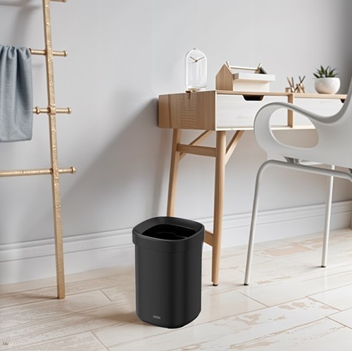 • DESQ afvalemmers zijn ontworpen voor gebruiksgemak, duurzaamheid en stille werking. Twee speciaal ontworpen randen houden de afvalzak op zijn plaats en verbergen hem voor een netter en schoner uiterlijk. Gemaakt van hoogwaardig metaal, voorzien van een onzichtbare vingerafdrukbestendige coating om de verspreiding van bacteriën te voorkomen.
