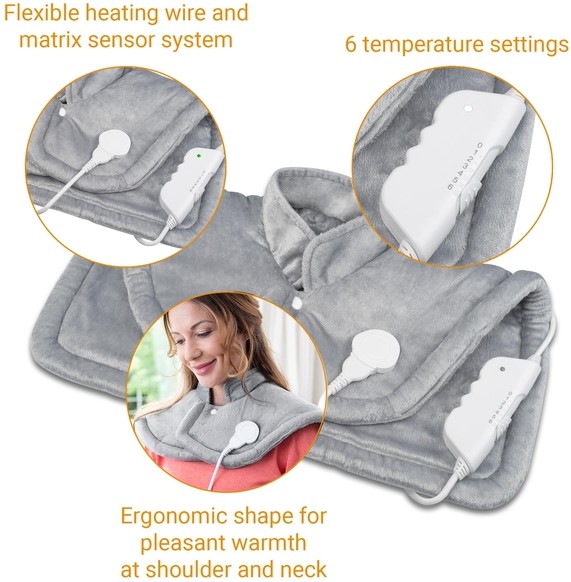 • Het flexibele verwarmingsdraadsysteem en het matrix sensorsysteem zorgen voor een gezellige, aangename en bijzonder gelijkmatige warmteverdeling die je snel kunt voelen. Uitgerust met de Turbo Heat-functie met een krachtige 100 watt, een praktisch bedieningselement en automatische uitschakeling na 90 minuten.