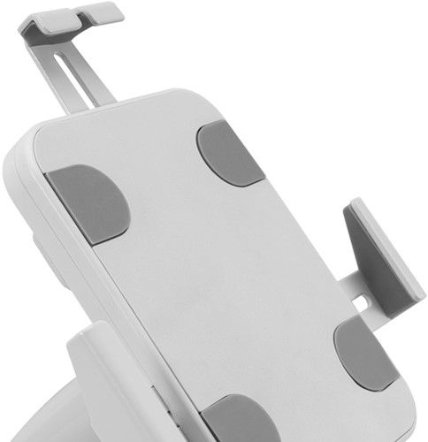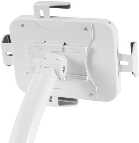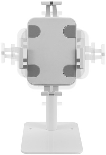• De Neomounts DS15-625WH1 is een tafelblad tablethouder die 360° kan roteren, zodat eenvoudig geschakeld kan worden tussen portrait en landscape oriëntatie. Daarnaast kan de tablethouder +20°/-110° kantelen voor een comfortabele kijkpositie. Met behulp van de schuifrail aan de achterzijde kan de tablet in het midden van de steun worden uitgelijnd. De tablethouder is voorzien van een anti-diefstalslot en een schroefbare basis voor extra veiligheid. Anti-slipkussentjes beschermen de tablet tegen eventuele krassen, terwijl de in hoogte en breedte verstelbare klemmen zorgen voor een veilige en solide plaatsing van het apparaat. De bovenzijde is voorzien van een uitsparing voor de camera van de tablet. Kabels kunnen netjes worden weggewerkt via het interne kabelmanagementsysteem. De DS15-625WH1 is geschikt voor tablets met een dikte van 0-8,5 mm.
