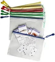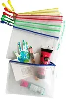 • Versterkte transparante opbergtassen van A5-formaat met ritssluiting.