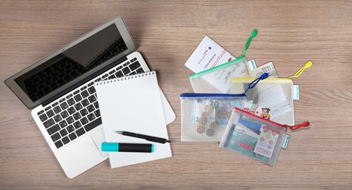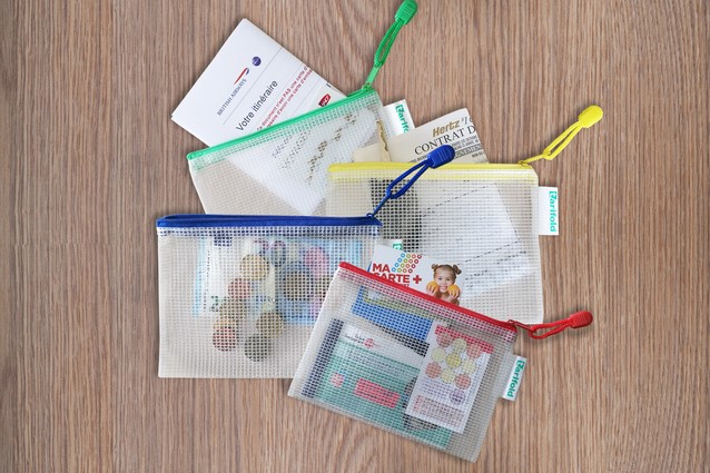 • Versterkte transparante opbergtassen van A6-formaat met ritssluiting.