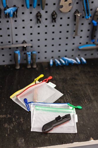 • Versterkte opbergtassen met ritssluiting verkrijgbaar in 4 maten en 4 kleuren voor een organisatie in kleurenthema. Perfect om uw documenten of kleine voorwerpen veilig te beschermen en mee te nemen. Een stoer en betrouwbaar accessoire voor op kantoor, in de fabriek, thuis, op school of op reis. Productbeschrijving: