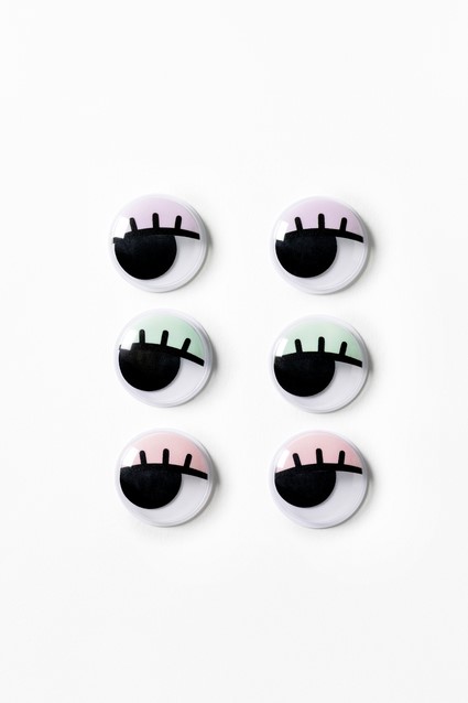 Wiebelogen Folia met wimpers 30mm set à 6 stuks assorti