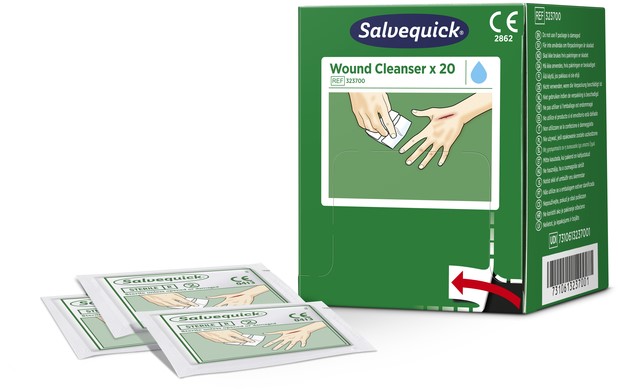 • De Salvequick Wondreiniger past in het Cederroth eerstehulpstation. De Salvequick Wondreiniger vervangt watten en flessen wondreinigingsoplossing. Buigzaam en gemakkelijk te gebruiken. Goed beschermd in de verpakkingen. De reinigingsvloeistof bestaat uit een steriele fysiologische zoutoplossing.