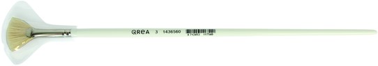 • Waaierpenseel Qrea varkenshaar nr. 3 – Ø 35mm De waaiervormige penseel van Qrea is een effectief instrument voor kunstenaars die werken met olie- of acrylverf. Dankzij de natuurlijke varkensharen biedt dit penseel een onzichtbare verfopname en uitstekende spreiding, ideaal voor het creëren van fijne structuren en zachte overgangen. De lange, witte houten steel ligt comfortabel in de hand en zorgt voor nauwkeurige controle tijdens het schilderen. Door de hoge elasticiteit en vormvastheid is de penseel kwaliteit, zelfs bij intensief gebruik. Kenmerken: