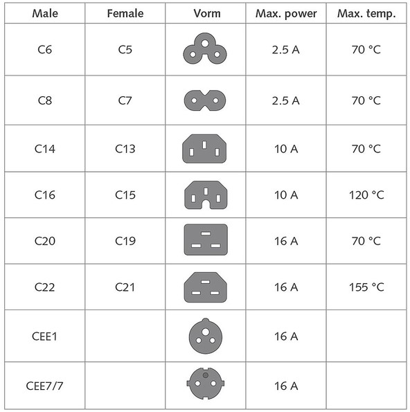 Kabel ACT Netsnoer CEE 7/7 male - C13 zwart 3 meter