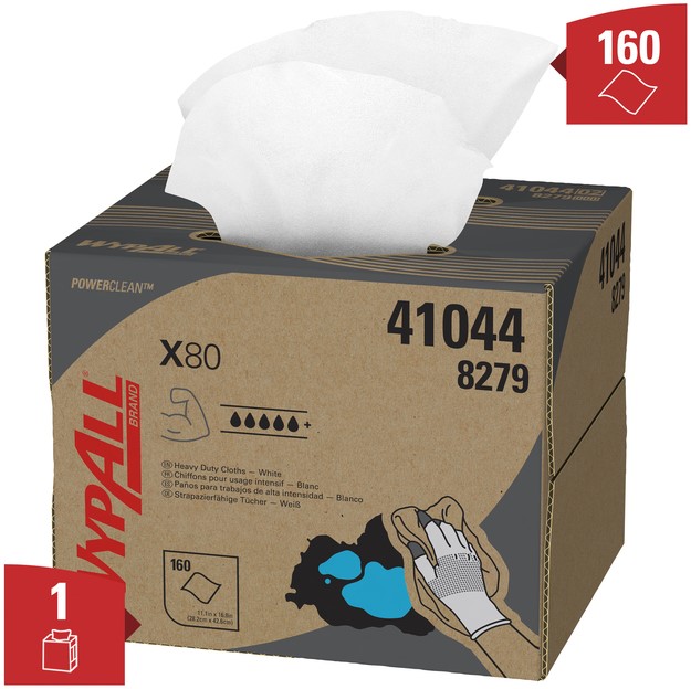 • De WypAll® X80 reeks is speciaal ontworpen voor zware reinigingstaken van ruwe oppervlakken, waarbij de sterkte en de grote omvang essentieel zijn. WypAll® X80 Poetsdoeken scheuren niet en zijn consistent qua kwaliteit en formaat. 70% van de gebruikers is onder de indruk van de duurzaamheid van de doek, waarmee ze door 3 keer zo veel gebruikers worden geprefereerd boven simpele doeken. De sterkte die we bieden, is toonaangevend. Ons doel is u te ondersteunen bij het verbeteren van de productiviteit en efficiëntie en tegelijkertijd afval te verminderen door schone, betrouwbare doeken te leveren die kunnen worden hergebruikt.