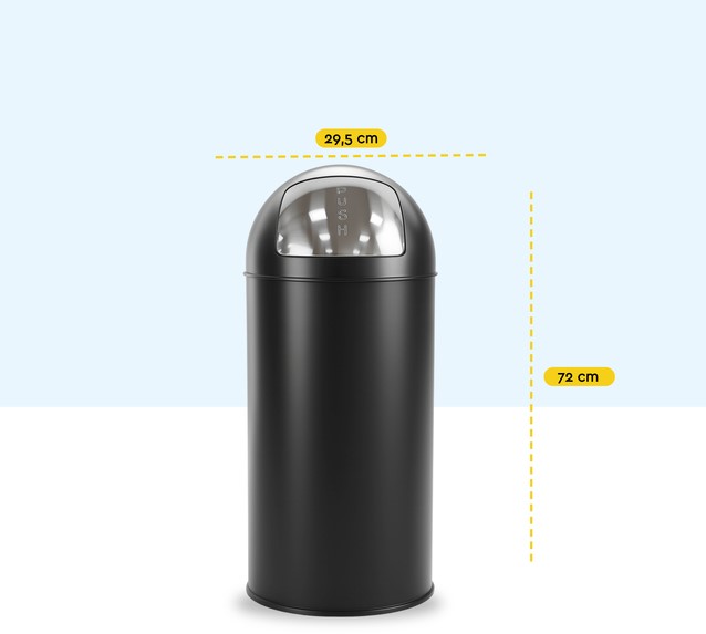 De BRASQ Push Bin Prullenbak 30 Liter is dé perfecte combinatie van design, gemak en functionaliteit. Of je nu een moderne keuken, strak kantoor of gezellige bijkeuken hebt: deze touch bin voelt zich overal thuis. Dankzij het minimalistische design, de slimme bediening en de royale inhoud is dit dé afvaloplossing voor wie houdt van orde, stijl én eenvoud. Tijdloos design: Deze push bin prullenbak is ontworpen met oog voor detail én gevoel voor stijl. De minimalistische en tijdloze uitstraling zorgt ervoor dat hij moeiteloos opgaat in elk interieur – van landelijk tot industrieel, van modern tot klassiek. Het strakke silhouet en de subtiele afwerking maken deze prullenbak tot een echte eyecatcher, zónder te overheersen. Een slimme keuze voor wie functionaliteit én uitstraling belangrijk vindt. Materiaal: De BRASQ Push Bin is vervaardigd van stevig RVS poedergecoat zwart, wat niet alleen bijdraagt aan een luxe uitstraling, maar ook garant staat voor een lange levensduur. De robuuste constructie van de afvalemmer is bestand tegen dagelijks gebruik, terwijl de gladde afwerking zorgt voor een hygiënische én onderhoudsvriendelijke ervaring. Een investering voor een keuken of badkamer prullenbak waar je jarenlang plezier van hebt. Grote binnenemmer: Dankzij de ruime inhoud van 30 liter van deze zwarte prullenbak hoef je minder vaak te legen, ideaal voor drukke huishoudens of werkplekken. De stalen binnenemmer is perfect passend en voorzien van een handige hendel. Daardoor haal je hem eenvoudig uit de buitenbak om te legen of schoon te maken. Kortom: geen gedoe, wél gemak. De perfect sluitende deksel houdt bovendien nare geurtjes netjes binnenboord. Gebruiksgemak: De touch bin opent met een simpele duw tegen de voorzijde van de klep – geen voetsysteem of losliggende deksel dus. Dankzij het compacte ontwerp en de stabiele voet met antikrasrand past deze pedaalemmer zelfs in kleinere ruimtes, zonder in te leveren op gebruiksgemak of capaciteit. Functioneel én comfortabel in gebruik, iedere dag opnieuw. Afmeting product: Ø29,5 x 72 cm (h)