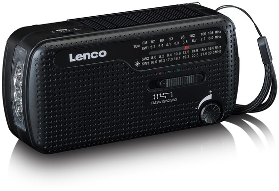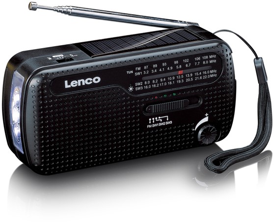• Deze MCR-113BK noodradio van Lenco is een alles-in-één draagbare radio met meerdere praktische functies. De radio kan namelijk ook gebruikt worden als zaklamp of powerbank. Het grootste voordeel van deze radio is dat er geen stopcontact in de buurt hoeft te zijn en dat je geen batterijen nodig hebt. Je kunt namelijk de benodigde stroom zelf genereren door de handslinger te gebruiken of het zonnepaneel bovenop de radio om hem op te laden. Mocht er toch stroom in de buurt zijn, dan is het ook mogelijk om de Lenco MCR-113BK op te laden met een USB-C kabel.