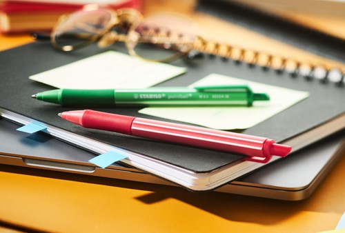 De balpen is er in een kleurrijk design voor een kleurrijk bureau. ISCC PLUS-gecertificeerd: 87% bioplastic is gebruikt voor de productie van de penbehuizing (mass balans) Hoge kwaliteit, zachte balpen inkt, met een lijndikte van 0,5 mm voor snel schrijven. Biedt een zekere grip dankzij de anti-slip gripzone en de dikkere shaft. Met klikmechanisme voor snel schrijven en bescherming van de punt. De gripzone en de drukknop laten de schrijfkleur zien. Makkelijk navulbaar met de STABILO Balpoint navulling.