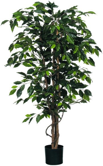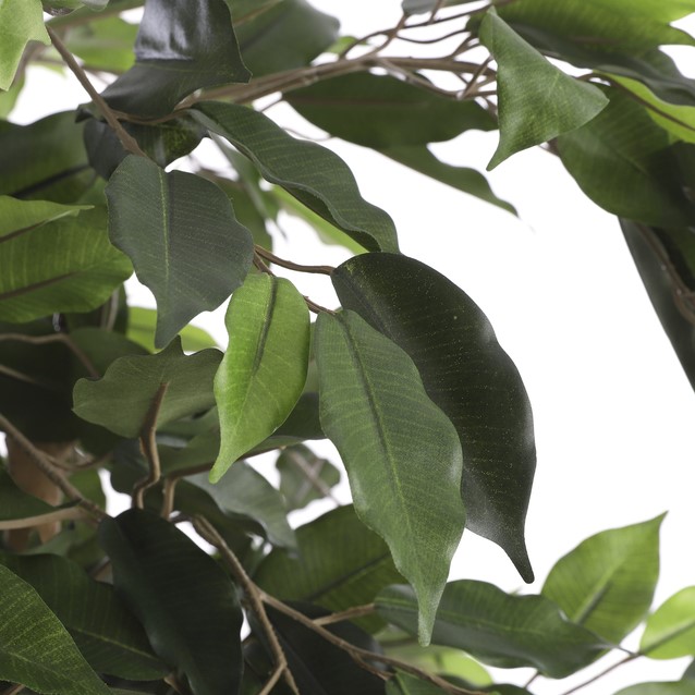Zin om zorgeloos te genieten van groen in huis? De kunstplanten van Mica Decorations zijn niet te onderscheiden van echte exemplaren, maar hebben absoluut geen verzorging nodig. Deze Ficus brengt direct een vleugje natuur in je interieur. De frisse, jonge blaadjes worden prachtig afgewisseld met diepere groene bladeren, wat zorgt voor een realistische uitstraling. Dankzij de houten stam lijkt de Ficus bijna levensecht! De plant is stevig geplaatst in een zwarte kunststof pot, maar je moet hem nog even in model brengen voor het beste resultaat. Zet hem na het vormen zo neer, of geef hem een persoonlijke touch door hem in een mooie overpot te zetten. Perfect te combineren met andere kunstplanten en bloemen uit de collectie. Na het uitvouwen heeft de plant een hoogte van 150 cm en een diameter van 85 cm.