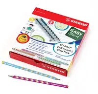 Het potlood scoort niet alleen met zijn ergonomische driekantige vorm, maar overtuigt ook met zijn smalle dikte en anti-slip gripuitsparingen voor links- en rechtshandigen. Dit ondersteunt kinderhanden bij het oefenen met schrijven en helpt bij de ontwikkeling van een leesbaar handschrift. Dun ergonomisch grafietpotlood STABILO EASYgraph S in Classpack met 48 potloden. Inhoud: 2 verschillende modellen linkshandig en rechtshandig.