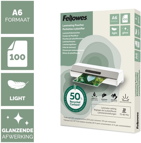 Lamineerhoes Fellowes A6 light 50% gerecycled glans 100stuks
