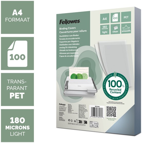 Voorblad Fellowes A4 PET 180micron recycled 100 stuks