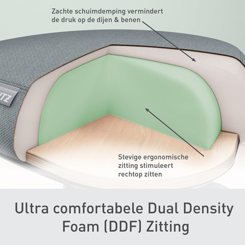 • De Leitz Ergo Actieve Zitkruk helpt je om energiek, comfortabel en actief te blijven tijdens je werkdag met elke beweging die je maakt! De driehoekige zitting vormt zich naar je lichaam als een zadel en helpt je gewicht gelijkmatig te verdelen voor optimaal comfort. Door de soepele kanteling van de zitting kantelt het zitvlak soepel in alle richtingen, wat natuurlijke beweging bevordert en je aanmoedigt om rechtop te zitten en in beweging te blijven. Hierdoor wordt je balans verbeterd en worden lichamelijke klachten verminderd. De stoffen bekleding is gemaakt van 100% gerecycled materiaal. Het compacte, ruimtebesparende ontwerp kan gemakkelijk onder een bureau worden opgeborgen. Deze modern ontworpen actieve zitkruk met wieltjes is ideaal om het comfort te verhogen en de productiviteit te maximaliseren, en past naadloos in vele omgevingen.