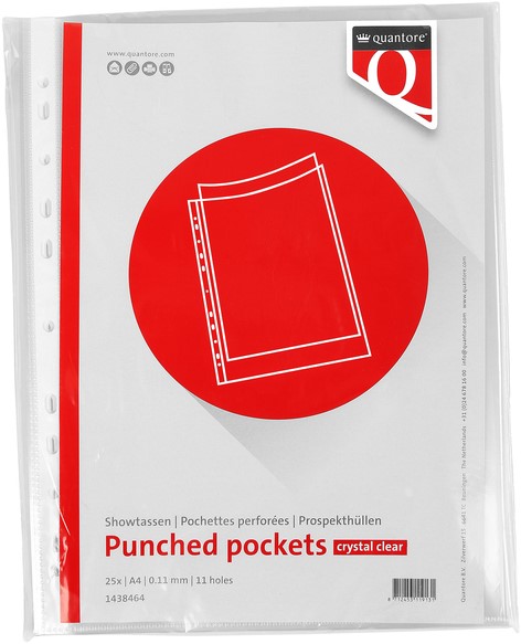 • De Quantore Showtas A4 met een extra stevige dikte van 0,11mm is jouw betrouwbare partner voor het professioneel presenteren en langdurig bewaren van documenten. Deze gladde showtas is vervaardigd uit hoogwaardig polypropyleen en biedt optimale bescherming tegen vouwen, vuil en verkleuring. Dankzij de copysafe-eigenschap blijven afdrukken perfect intact, zelfs bij langdurig gebruik. Je documenten schuif je snel en eenvoudig in via de open bovenzijde. De 11 versterkte ponsgaten zorgen ervoor dat je de tas in elke standaard map, ordner of ringband kunt opbergen. Praktisch, duurzaam en onmisbaar op elk bureau of in elke schooltas. Kenmerken: