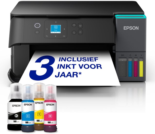 De ET-2950 biedt veelzijdige connectiviteit: print draadloos via Wi-Fi of Wi-Fi Direct vanaf uw smartphone of tablet, of gebruik de netwerkaansluiting (Ethernet LAN) voor vaste aansluiting. Het navulbare EcoTank-inktsysteem zorgt voor extreem lage gebruikskosten: één set inktflessen levert tot circa 8.500 zwart-witpagina’s of 6.500 kleurpagina’s en bespaart tot wel 95 % op inktkosten ten opzichte van traditionele cartridges. Bovendien is het ontwerp energiezuinig, met standby-verbruik van slechts enkele tienden van een watt, en is de verpakking ontworpen met minder plastic-afval.