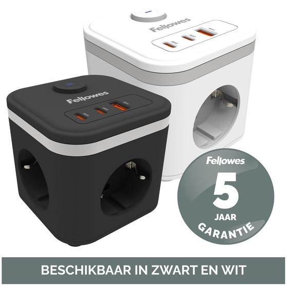 Stekkerblok Fellowes Power Cube F 3vdg 1xUSB A 2xUSB C 2 meter zwart